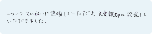 「外に出たい」「一人で食堂に行けるようになりたい」など、利用者様のご要望は様々です。そういったご要望をしっかりと理解し、「必要な手すりを、必要な分だけ」という考え方が大切です。せっかく設置してもあまり使われない…。そんなことがないようにしっかりとお話を聞いて、適切に設置する必要があります。
